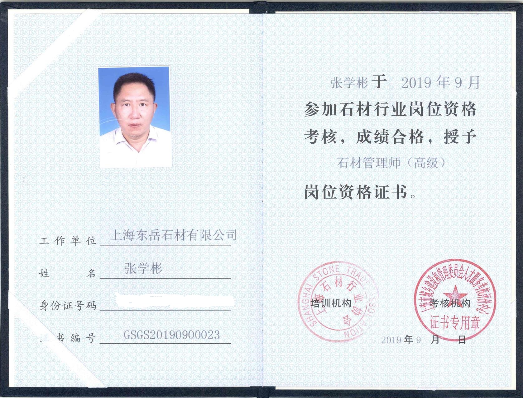 8月9日至12日,由上海市石材行業(yè)協(xié)會和上海市城市建設(shè)和管理委員會人才服務(wù)考核評價中心聯(lián)合舉辦的高級石材管理師培訓(xùn),經(jīng)過3天的緊張學(xué)習(xí)和后續(xù)網(wǎng)絡(luò)視頻教學(xué),主要學(xué)習(xí)了石材分類和特性、石材加工、石材安裝、石材防護(hù)方面的知識,也參觀了金石獎優(yōu)秀石材工程-復(fù)旦大學(xué)江灣校區(qū)體育館項(xiàng)目,進(jìn)行了石材企業(yè)經(jīng)驗(yàn)分享和經(jīng)營管理交流互動。上海東岳委派人員張學(xué)彬培訓(xùn)合格并取得相應(yīng)證書。